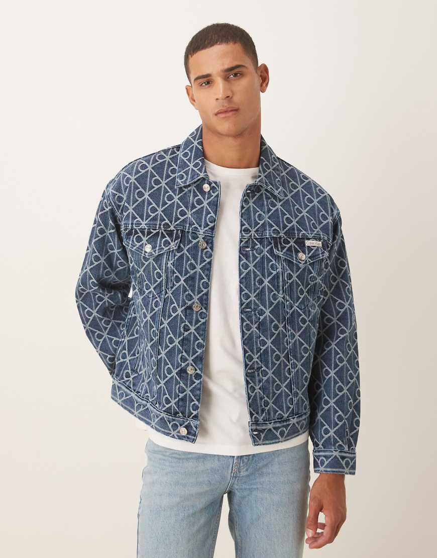 Calvin Klein Jeans all over logos denim jacket in indigo wash-Navy