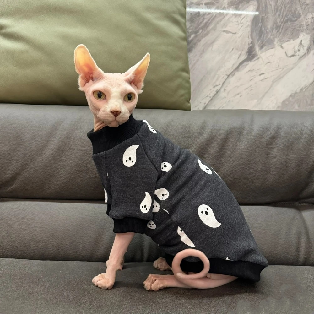 Cozy Black Cotton Coat For Sphynx & Devon Rex: Winter Ghost Sweatshirt, Spring Loungewear S 1
