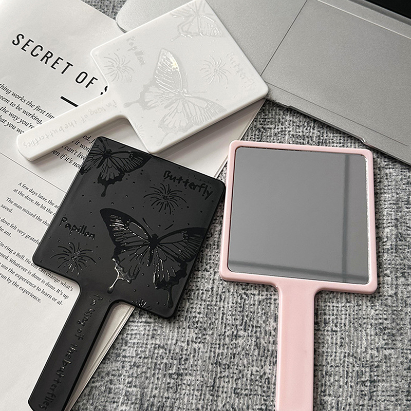 Mini Hand Held Desktop Cosmetic Makeup Mirror, Vintage Butterfly Square Mirror, Travel Portable Beauty Mirror For Girls pink