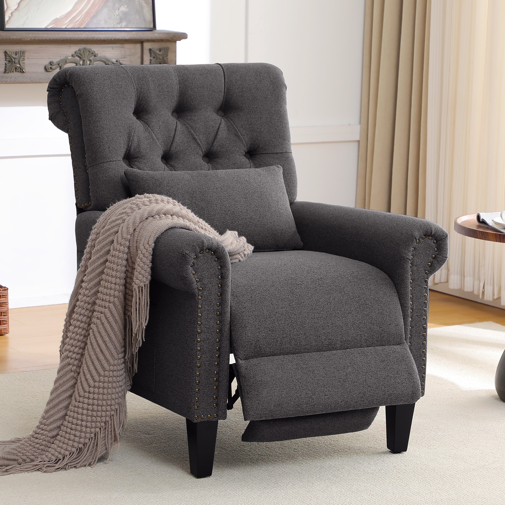 HOMYKA Upholstered Recliner, Mid-Century Style Armchair with Nailhead Accents