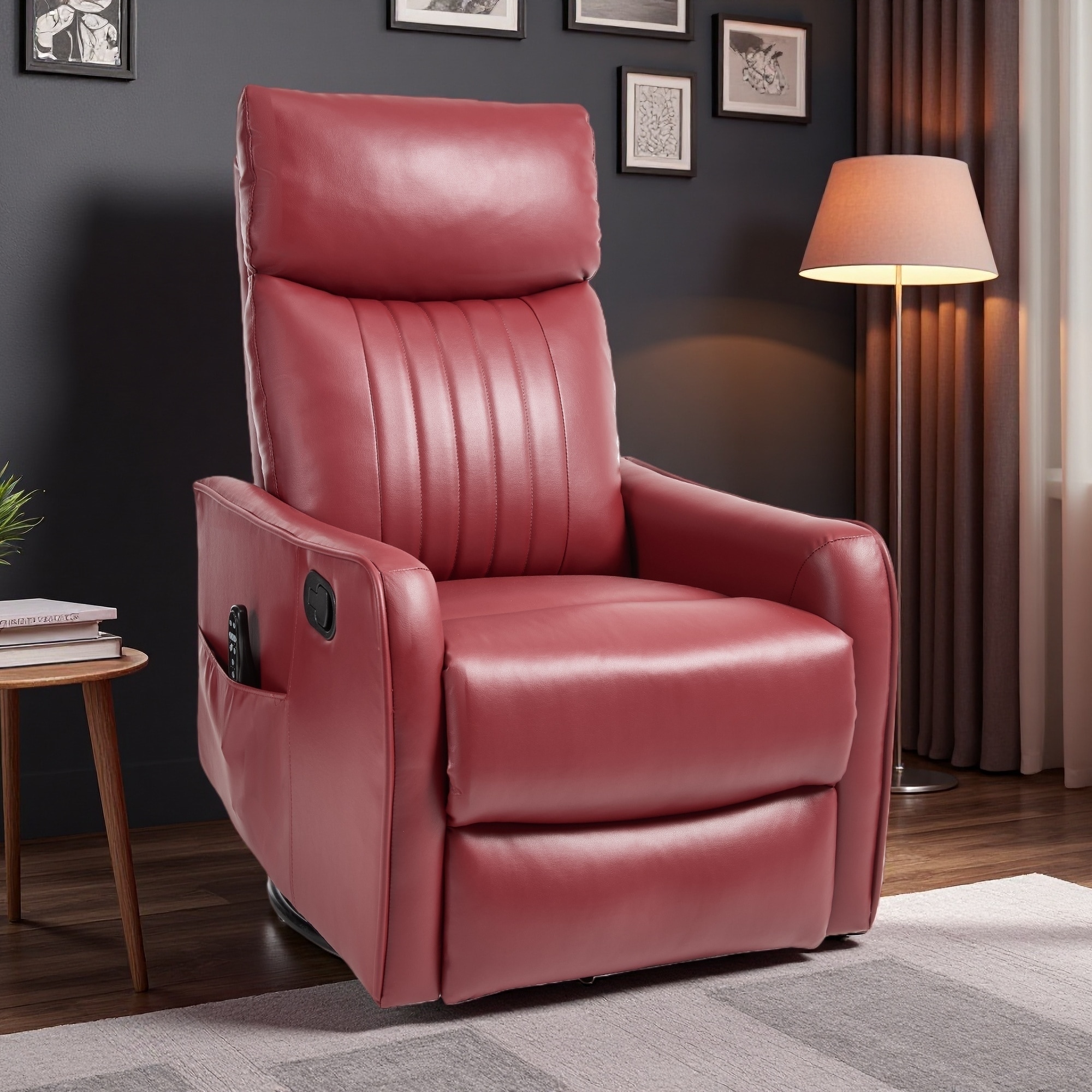 Faux Leather Manual Recliner Chair with 360° Swivel Rocker and 8-Point Heat Massage
