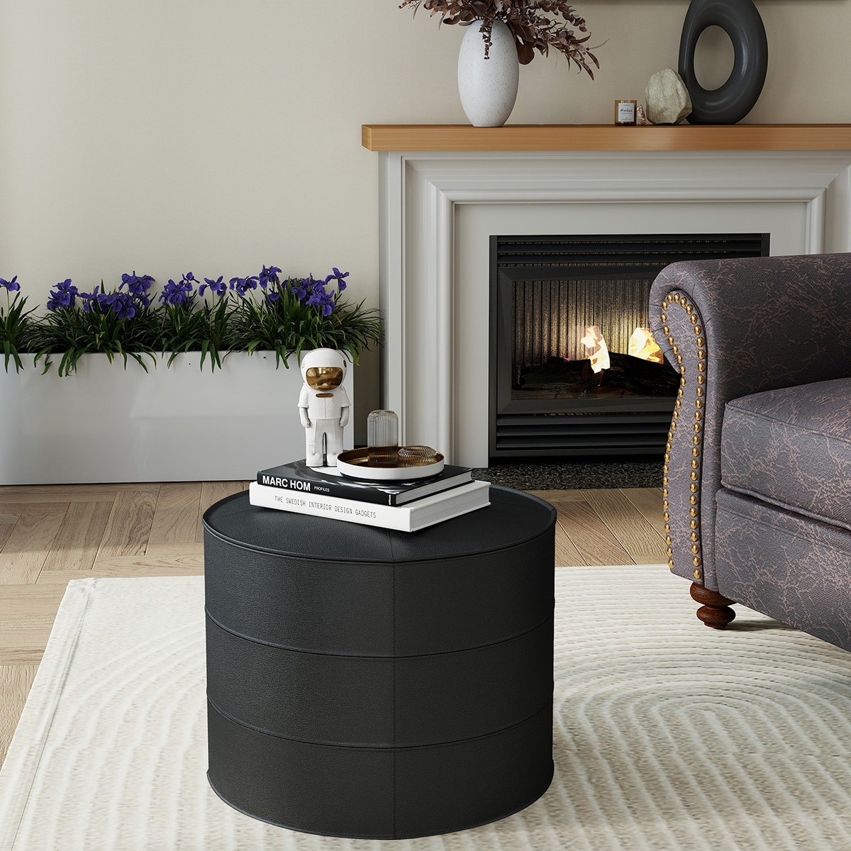 Kayamas Genuine Leather 21 inch Square Pouf Ottoman for Modern Interior