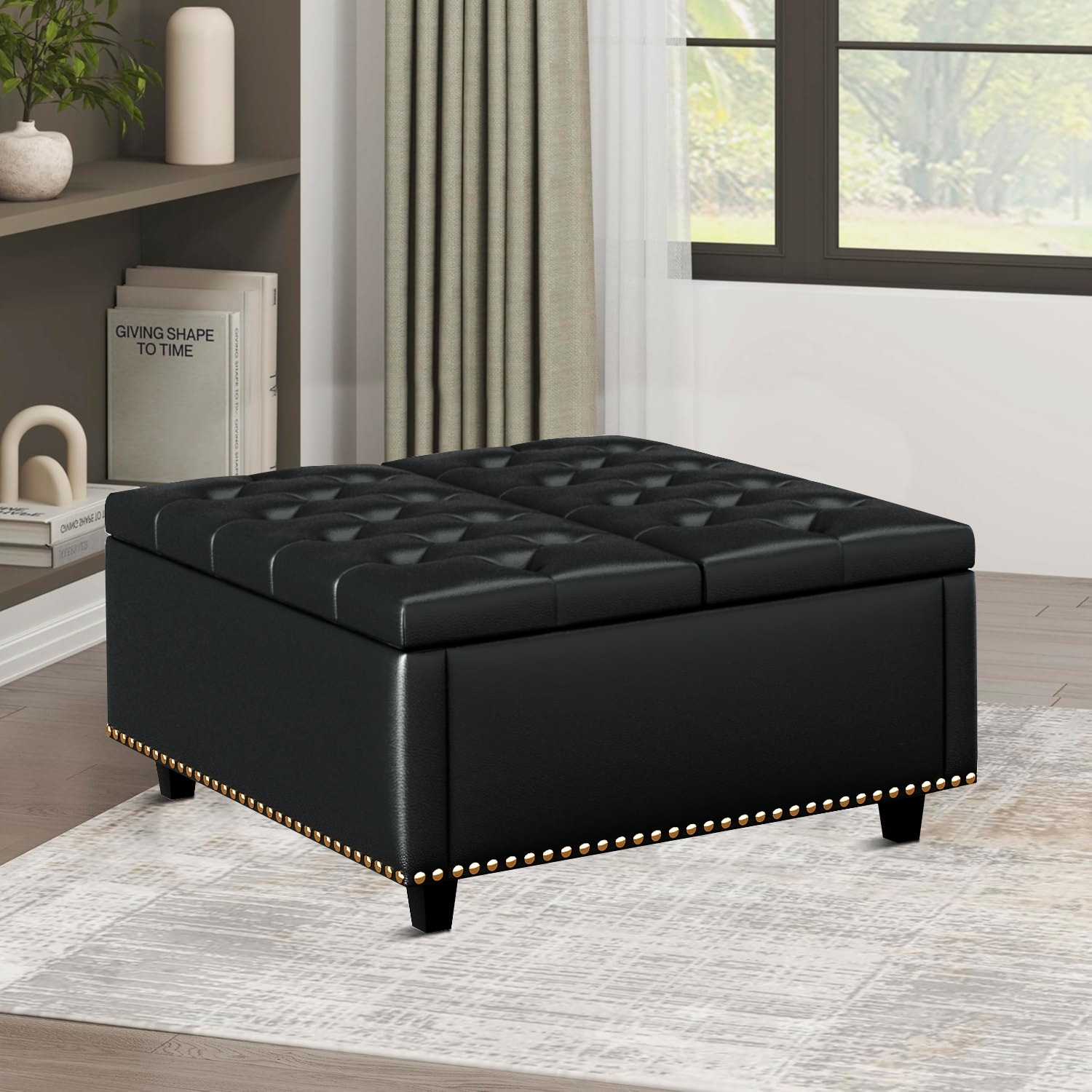 Upholstered Storage Footstool Ottoman with Lift-Up Top and Flip-Up Top