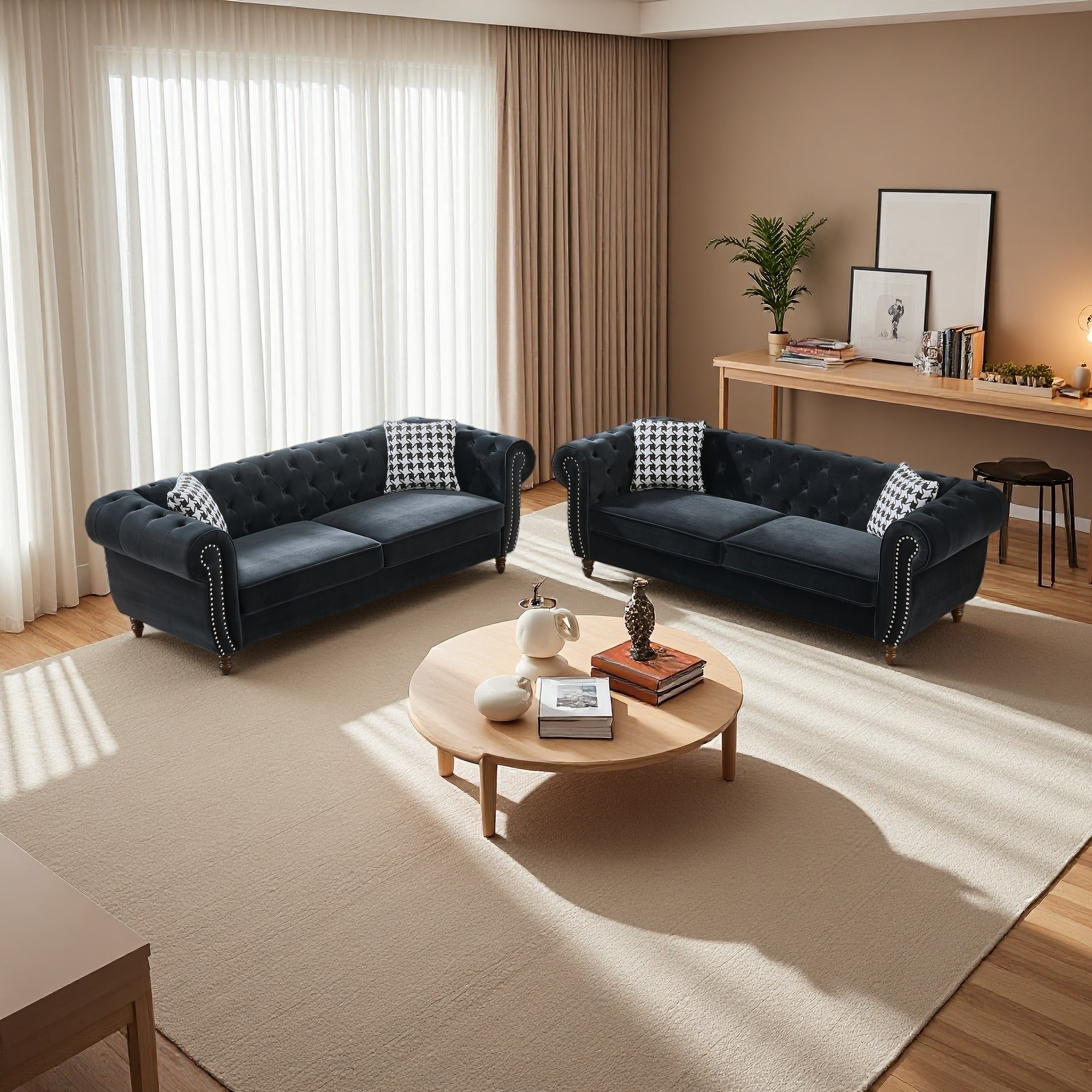 Curved Chenille Loveseat with 3 Pillows, No Assembly Compact Sofa