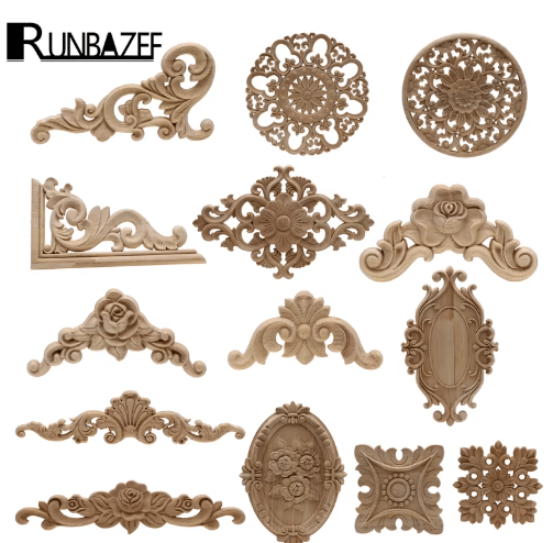 Carved Wood Corner Appliques Floral Furniture Onlays For Elegant Home Decoration c3 8cmx15cm R