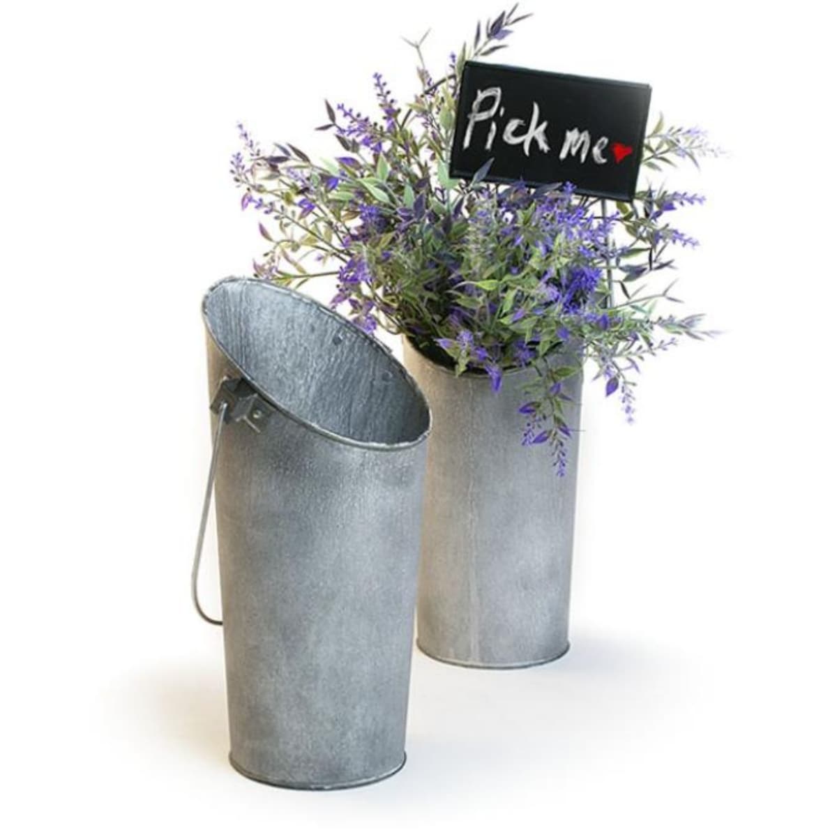 Vintage Metal Wall Pocket Pail for Home Decor and Tabletop Display - 5.25dia top x 8"H front x 11.25"H