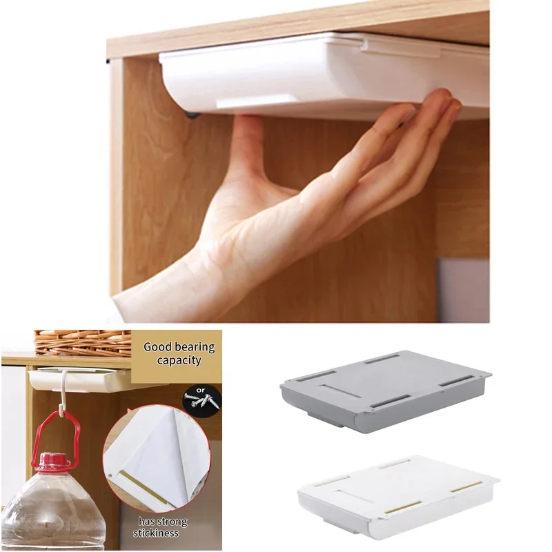 Punch Free Self Stick Desktop Organizer, Drawer Type Storage Box Under Desk, Invisible Office Sundries Storage Drawer grey 1pcs