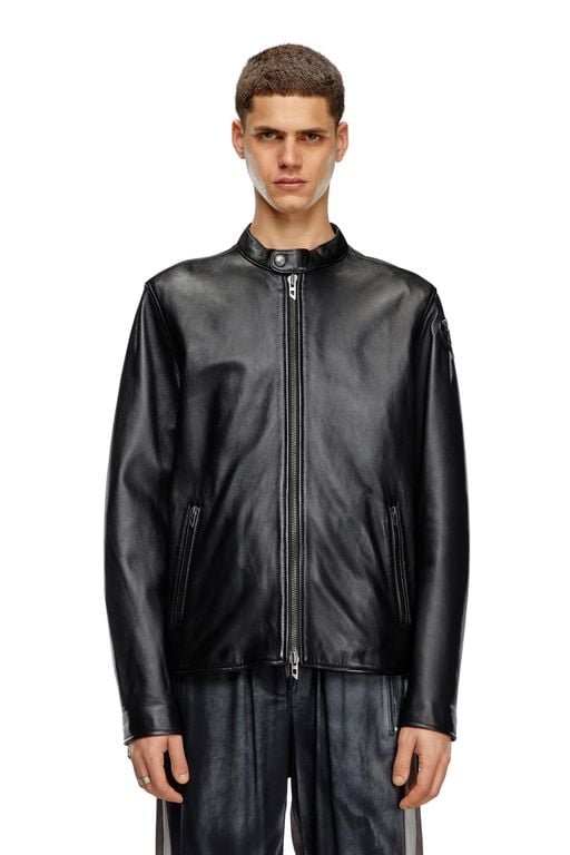 Leather Biker Jacket With Embossed Logo - Black - DIESEL Jackets