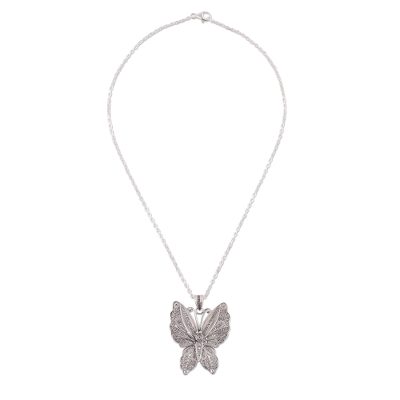 Nocturnal Butterfly,'Sterling Silver Butterfly Filigree Pendant Necklace'