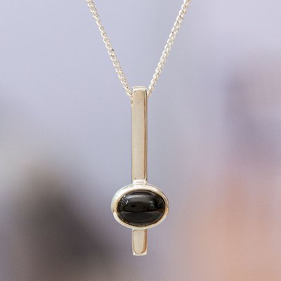 Circle Shadow,'Handcrafted Sterling Silver and Onyx Pendant Necklace'
