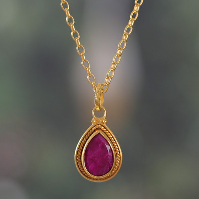 '22k Gold-Plated Pendant Necklace with 3-Carat Ruby Gemstone'