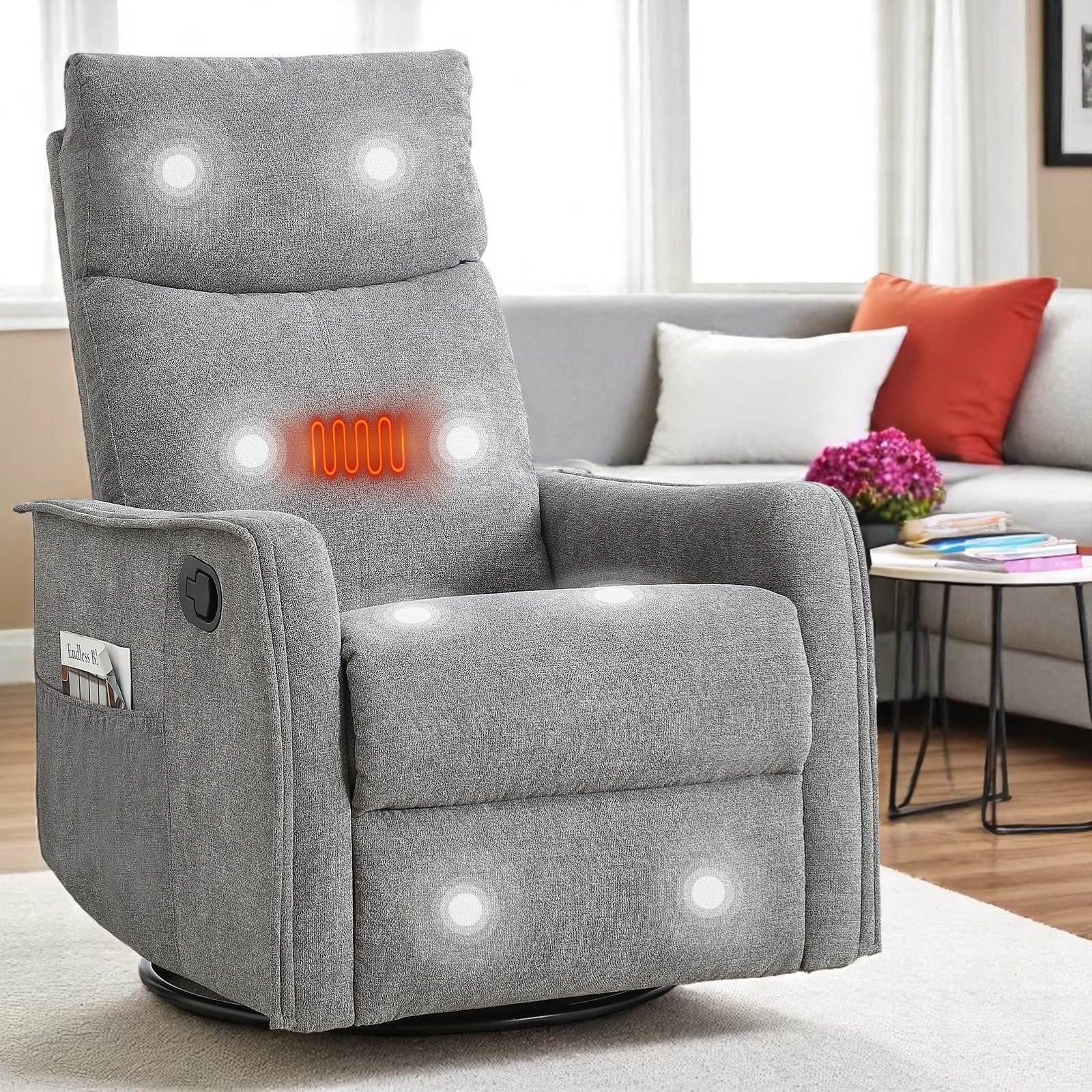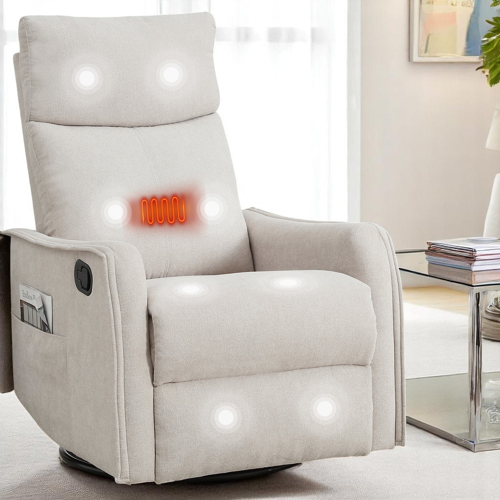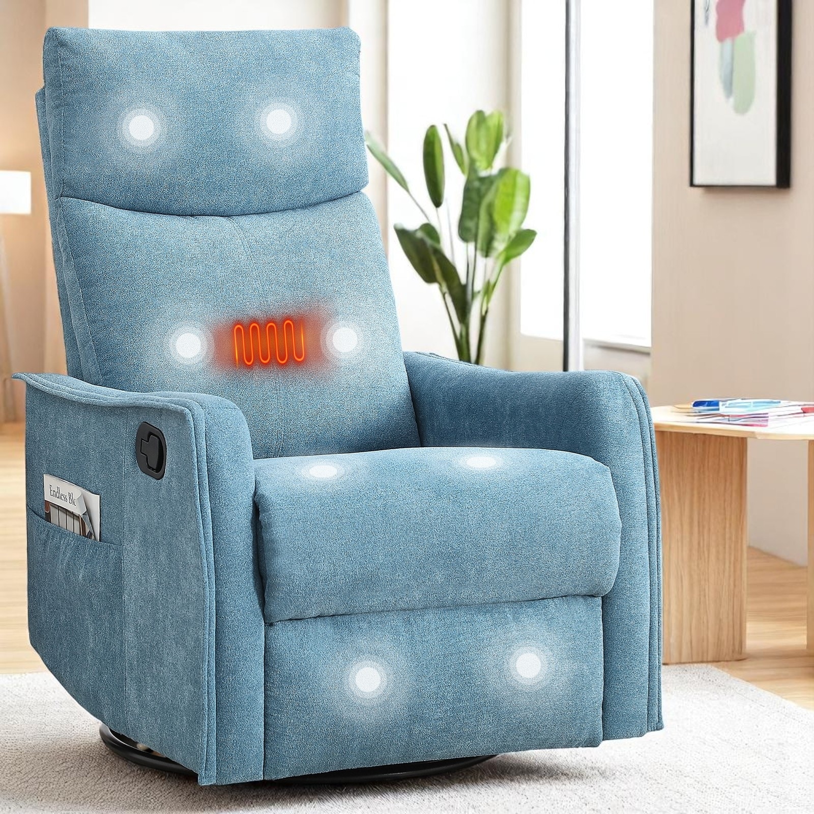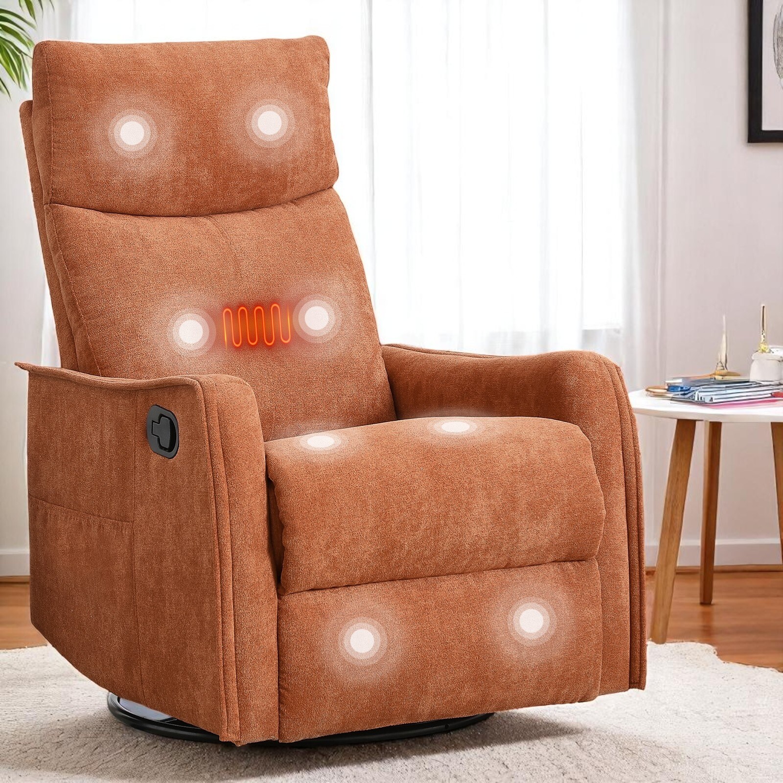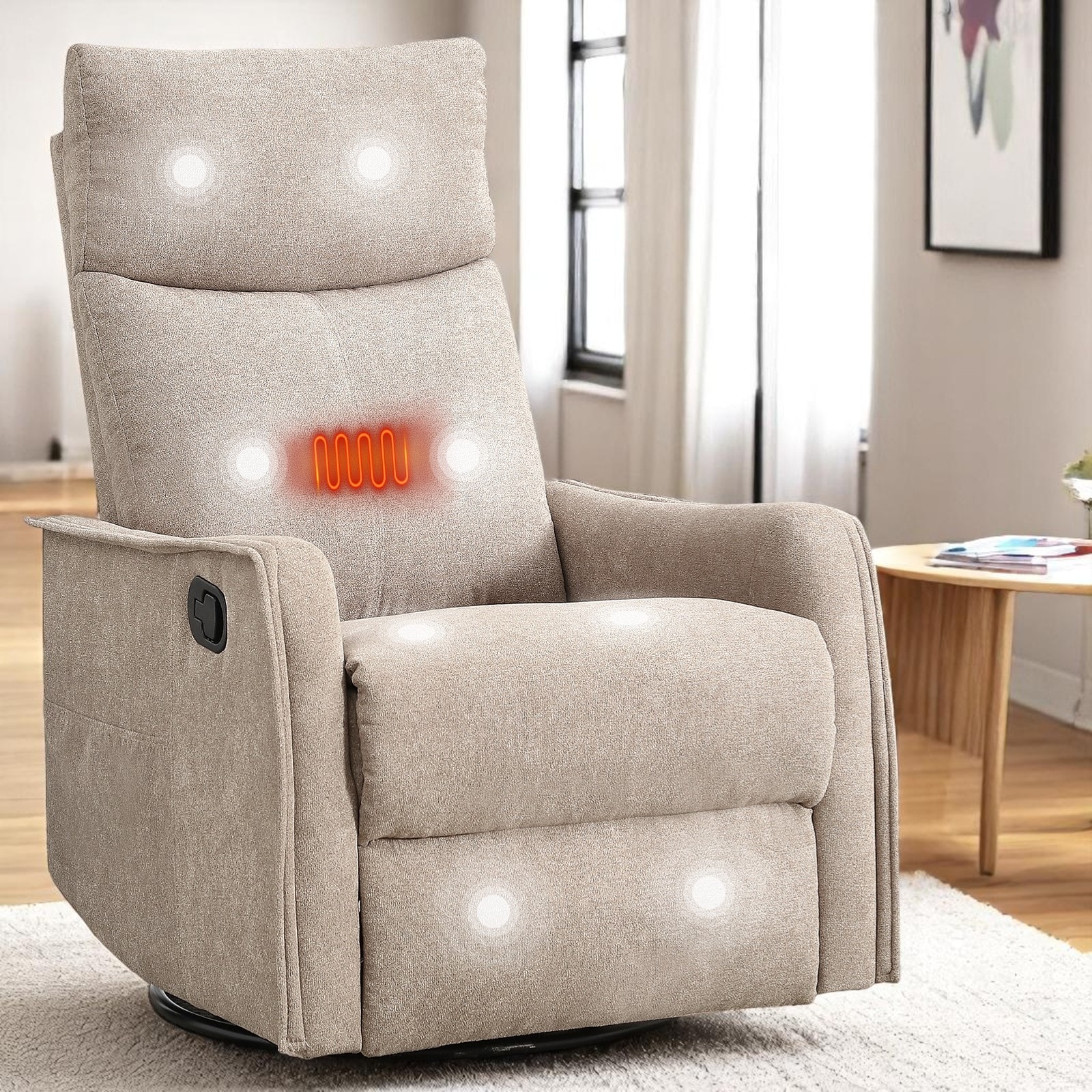 Manual Swivel Rocker Recliner with Heat and Massage, Fabric Upholstered Living Room Chair Heavy Duty