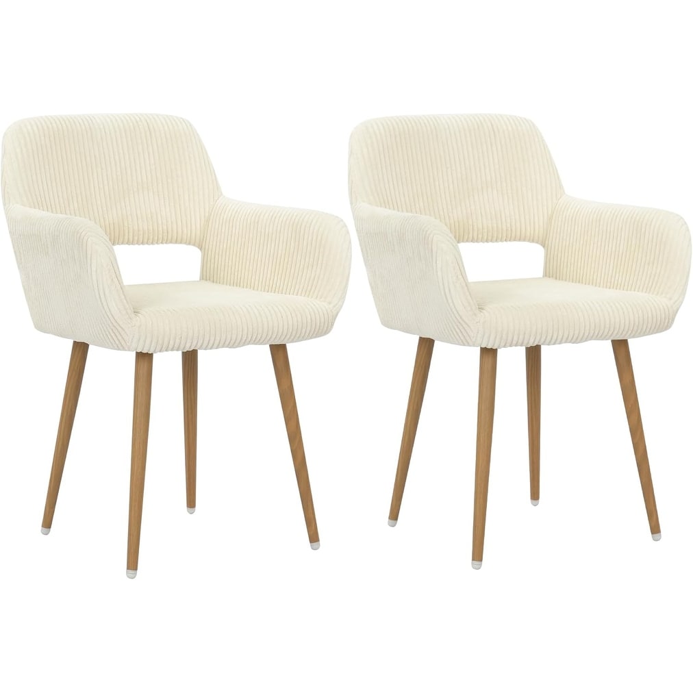 Set of 2 Beige Corduroy Dining Chairs with Wood Grain Metal Legs for Living Room, Bedroom, or Office