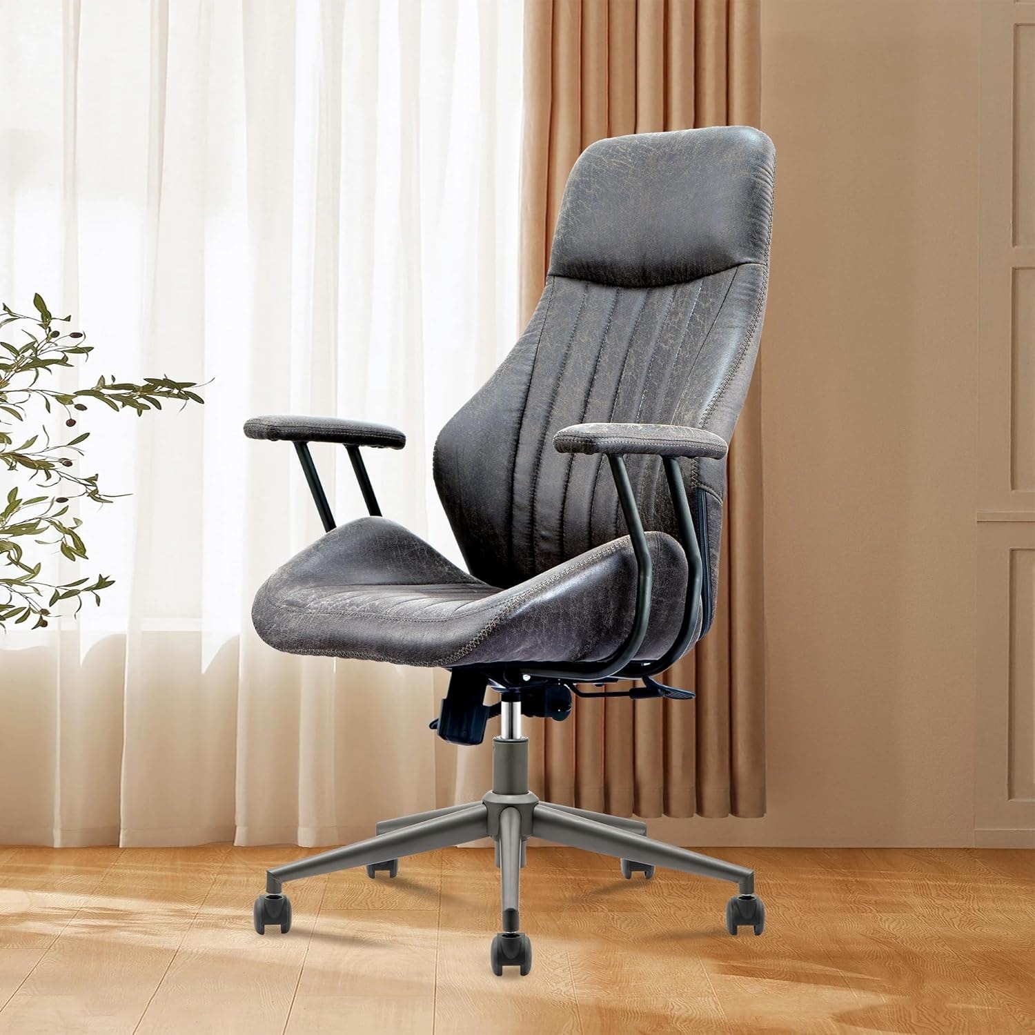 Comfortable Swivel Office Chair with Adjustable Armrests, Wide Seat, and Premium Leather Upholstery