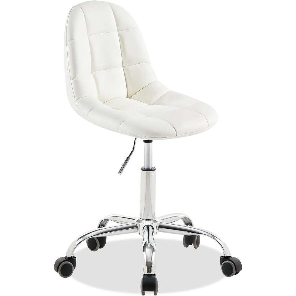 Adjustable Height Armless Office Chair, 360° Swivel with Wheels, PU Leather, White