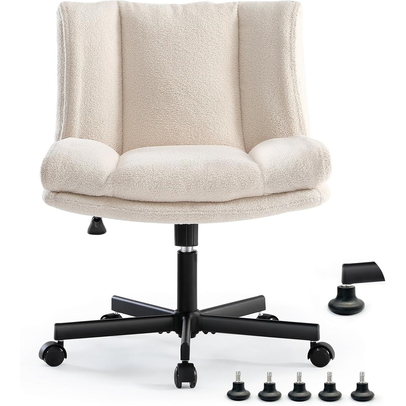 Adjustable Furry Swivel Office Chair with Wide Seat and Tilt Function, Cream White