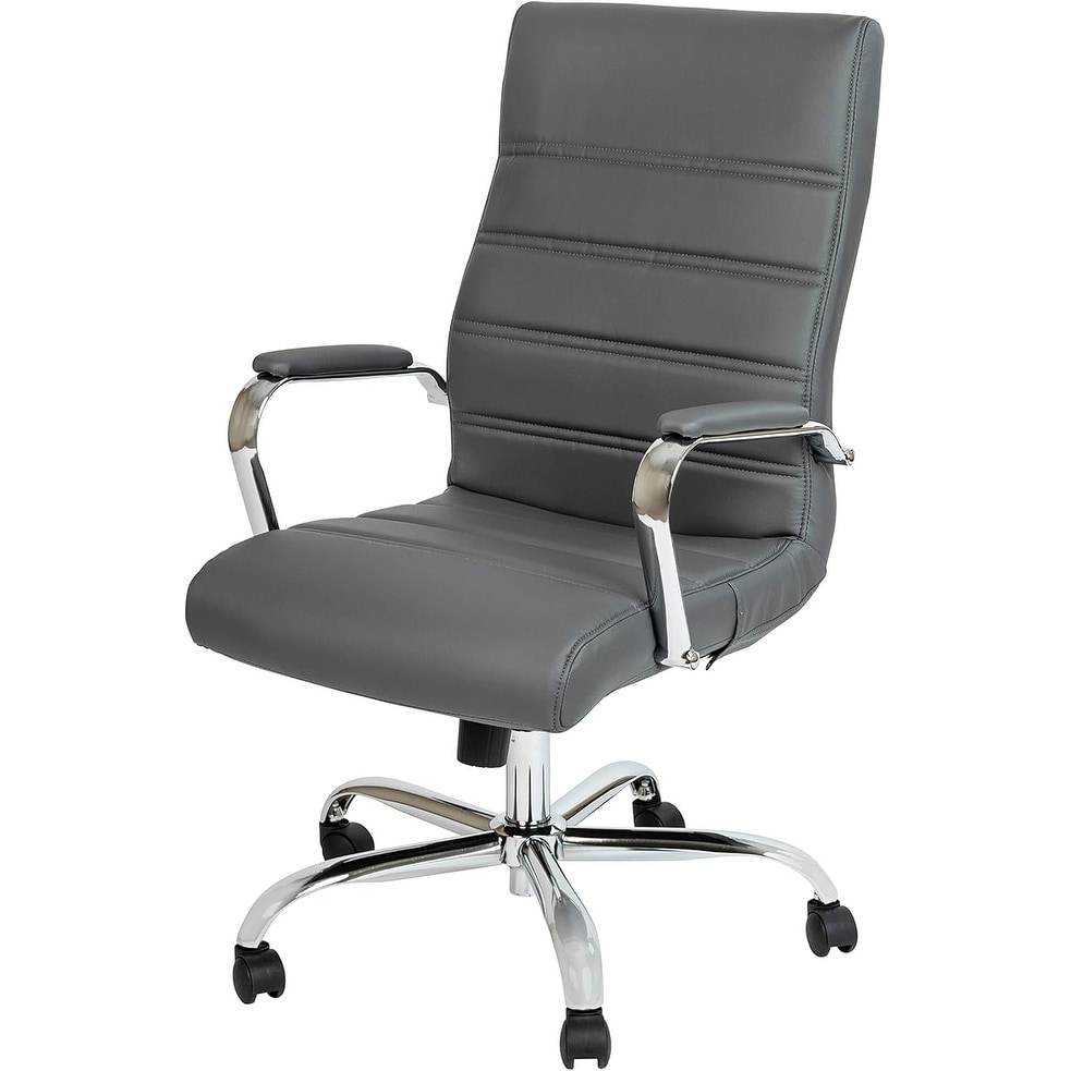 High-Back Swivel Office Chair with Padded Seat, Armrests, and Adjustable Height, Gray/Chrome