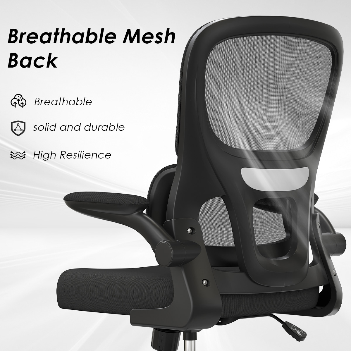 Office Chair with Adjustable Lumbar Support, Computer Desk Chair with Flip Armrest, Swivel Chair with Rolling Wheels