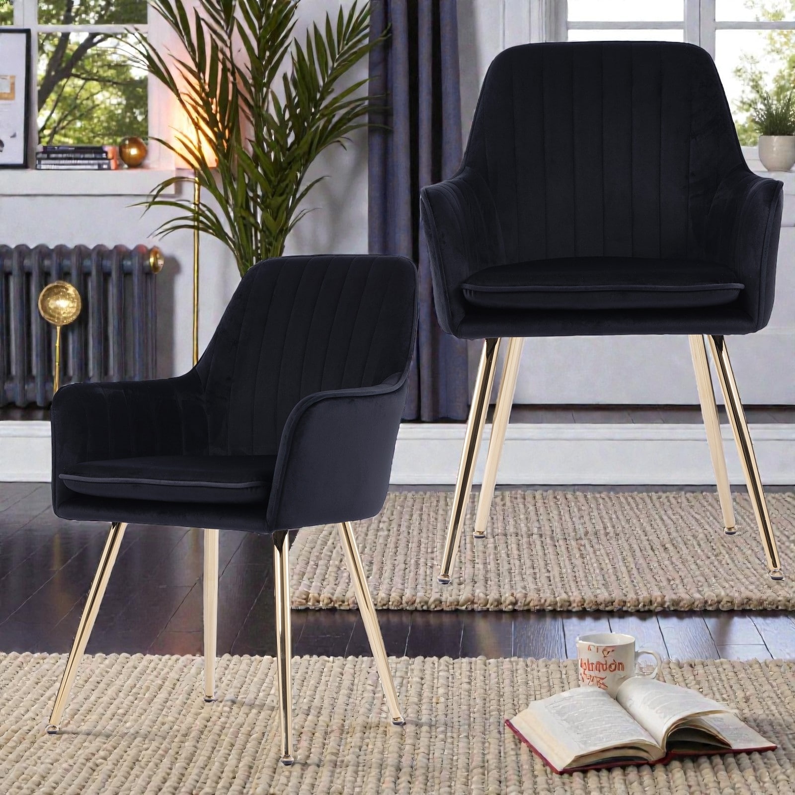 Velvet Mid-Back Set of 2 Office Chairs with Gold-Finished Metal Legs, Dining Chair, Removable Cushion, Ergonomic Upholstery