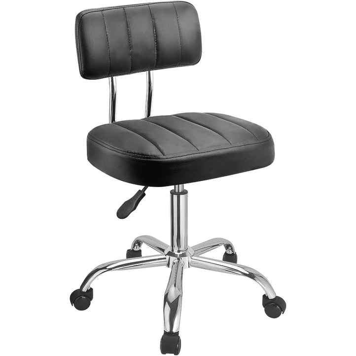 Adjustable Height Office Desk Chair with Wheels, Swivel Stool with Backrest and Lumbar Support, PU Leather Rolling Chair