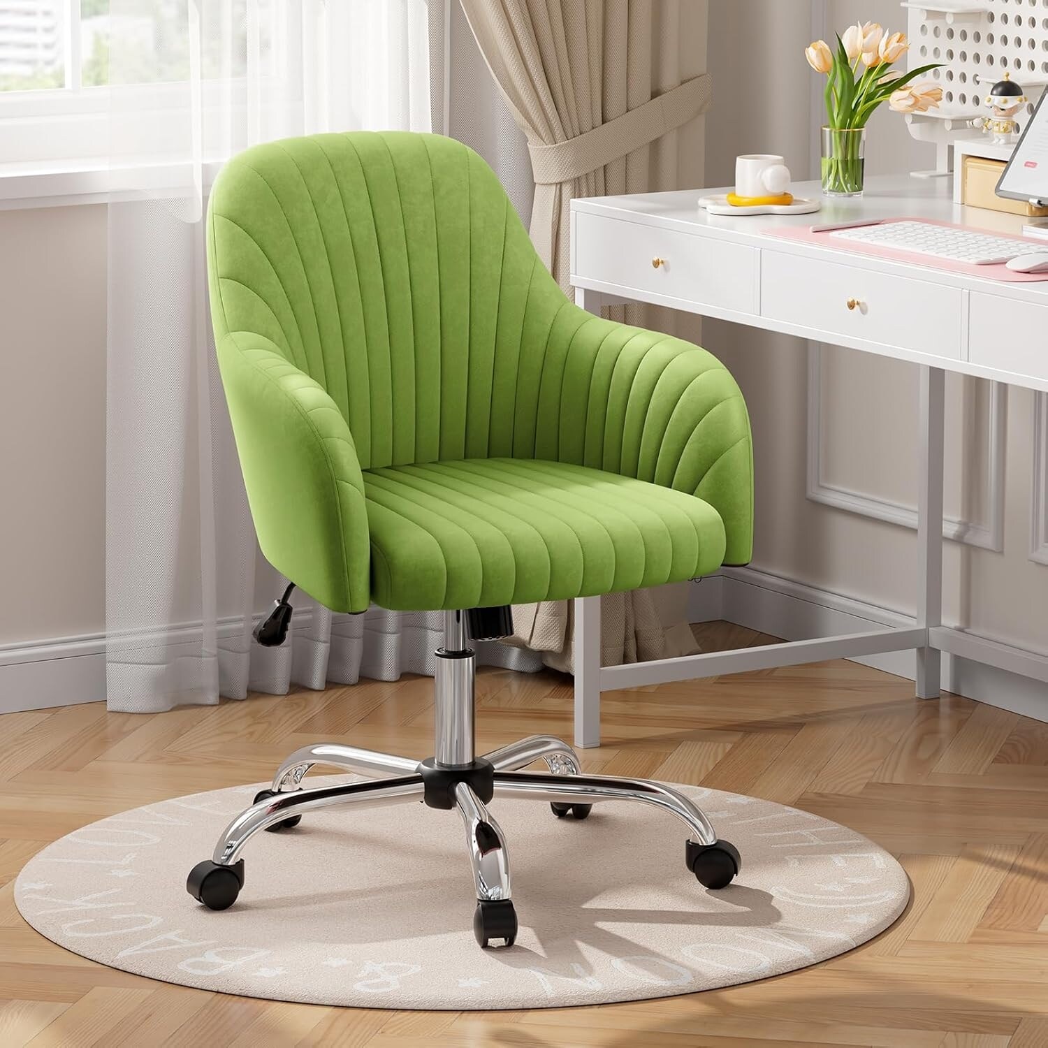 Modern Velvet Swivel Office Chair with Adjustable Height, Armrests & 360° Wheels - Light Green