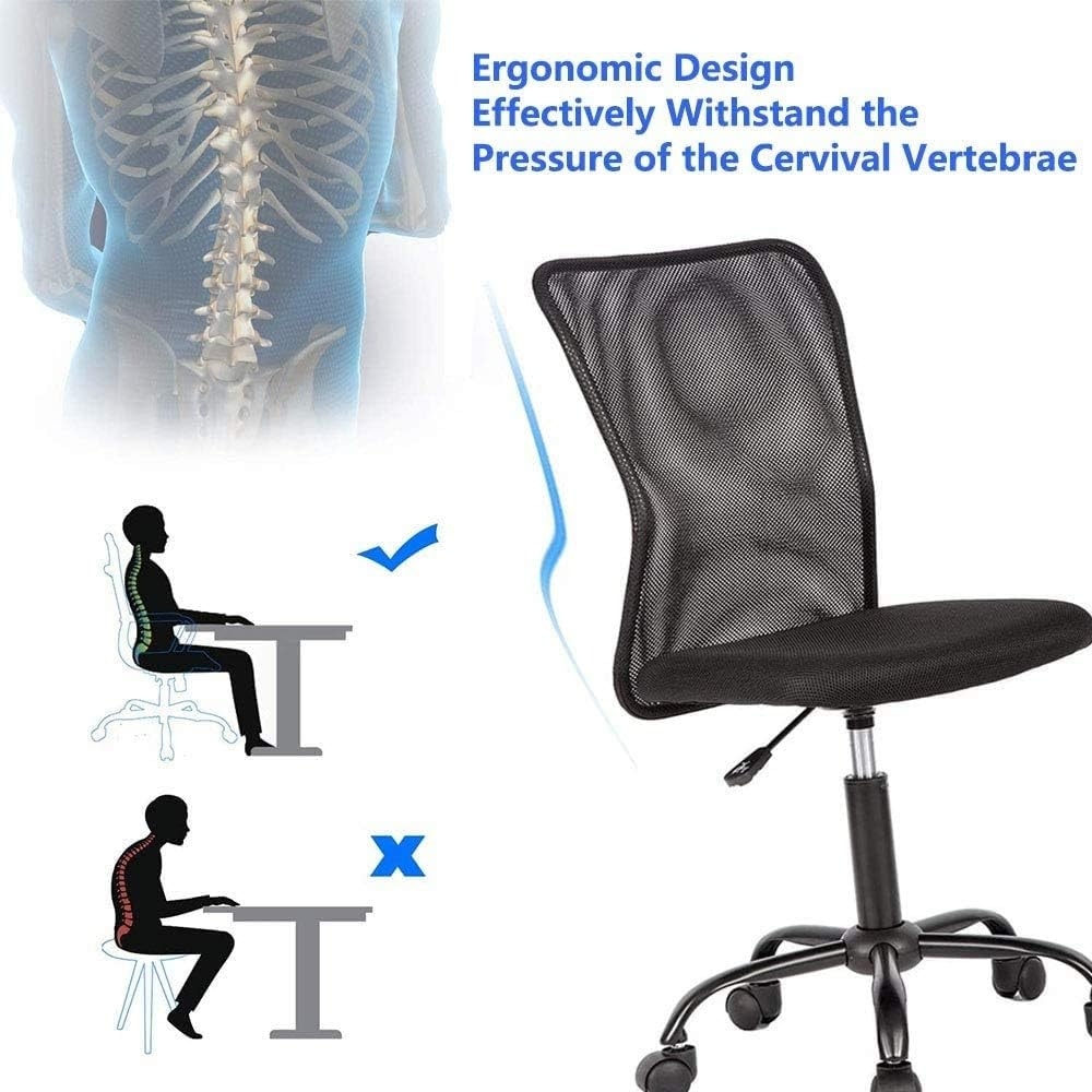 Ergonomic Mesh Office Chair with Lumbar Support, Adjustable Swivel Mid Back Desk Chair for Home Office, Black