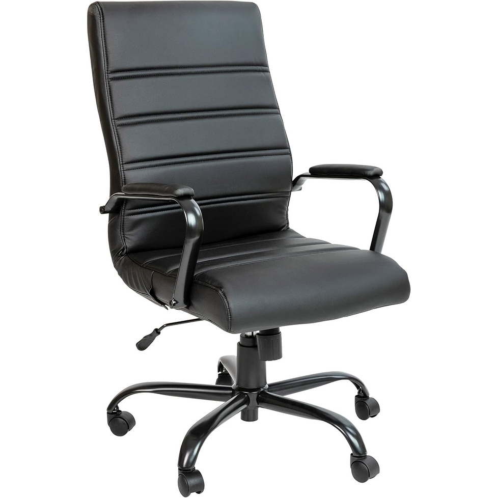 High-Back Swivel Office Chair with Padded Seat & Armrests, Adjustable Height, Black LeatherSoft Design