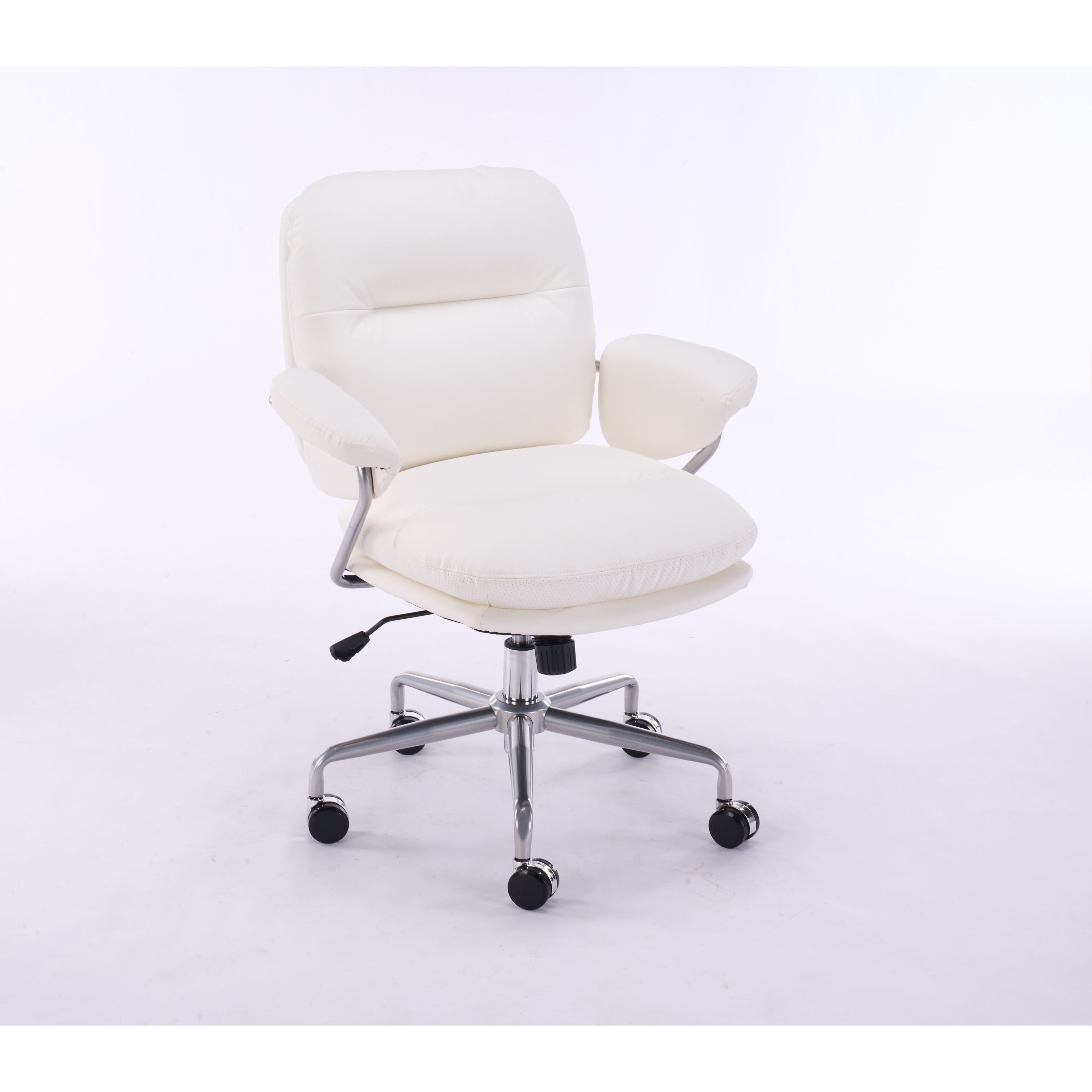 PU Leather Home Office Chair, Tufted Desk Chair with Padded Armrests, Swivel Vanity Chair with Adjustable Height