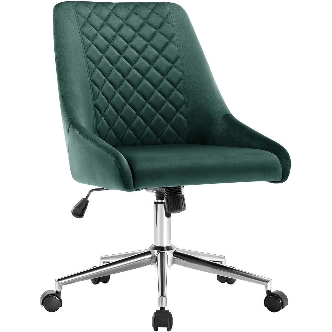 Velvet Home Office Chair with Wheels, Adjustable Swivel Armless Desk Chair for Bedroom or Living Room, Dark Green