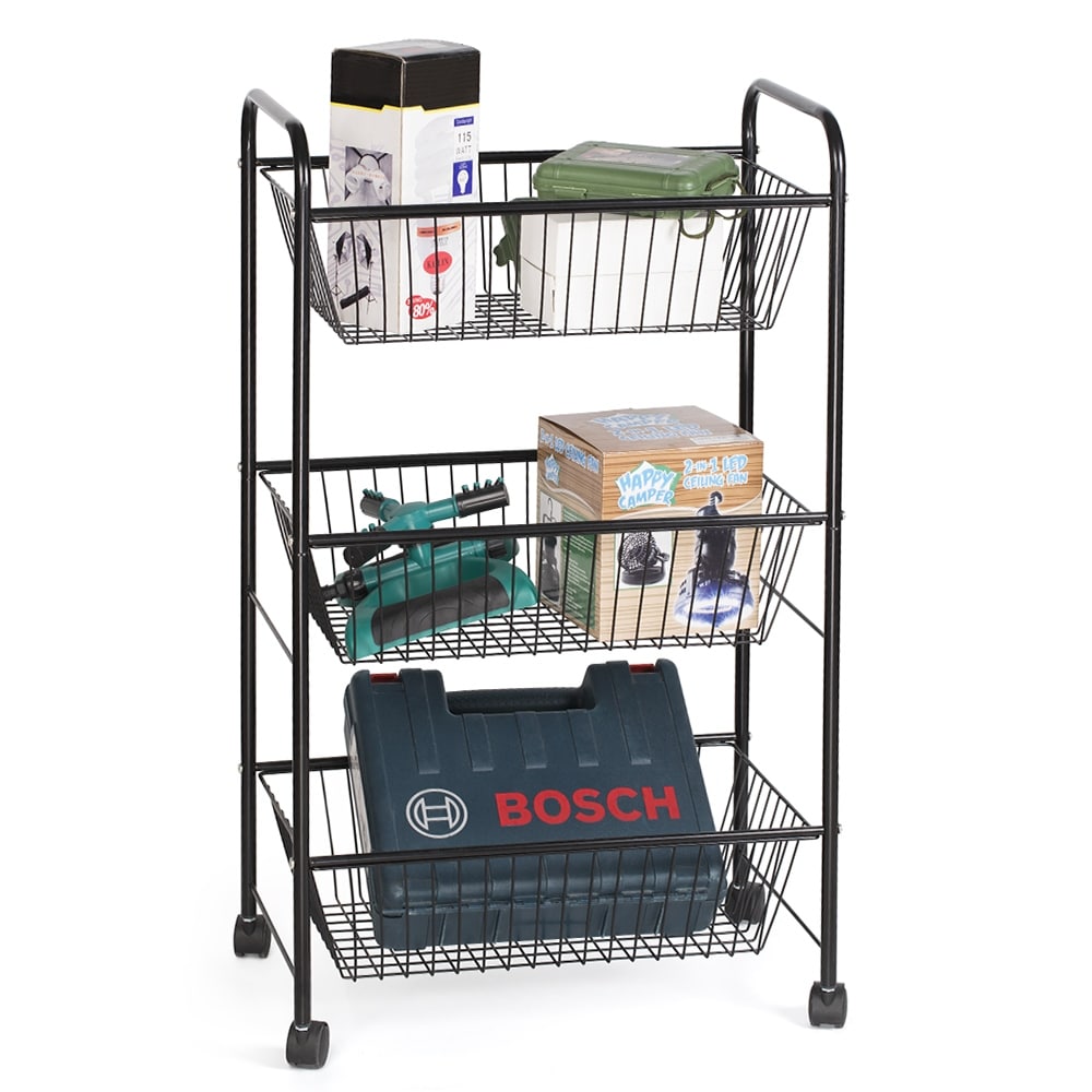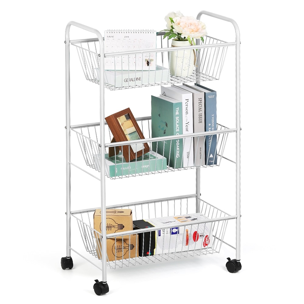 3-Tier Rolling File Cart with Wheels - 17.3"D x 11.8"W x 32.6"H