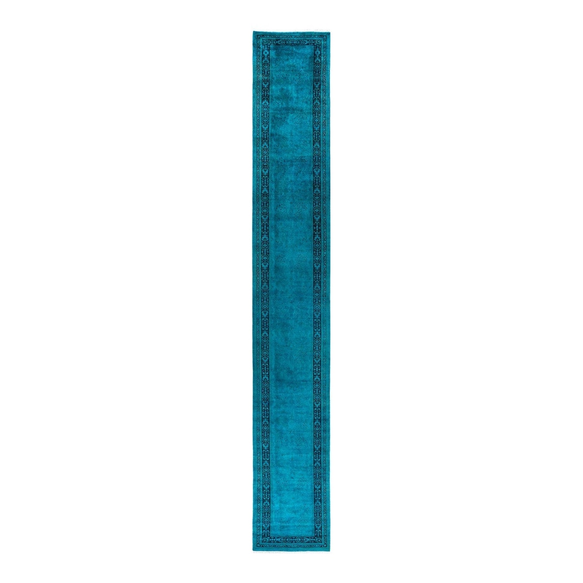 Overton Hand Knotted Wool Vintage Inspired Modern Contemporary Overdyed Blue Runner Rug - 2' 7" x 18' 8"