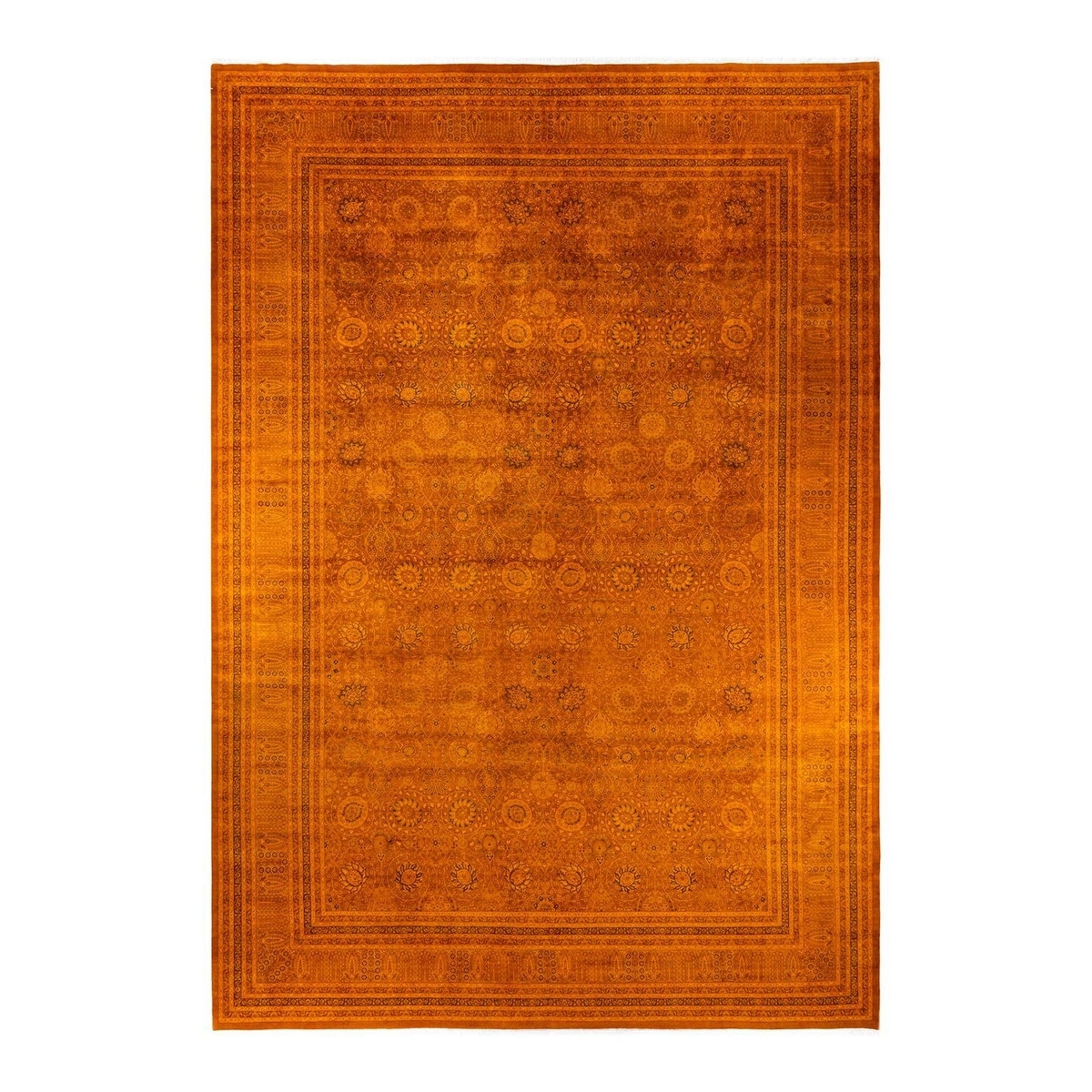 Overton Handknotted Wool Vintage Inspired Contemporary Overdyed Orange Area Rug - 18' 2" x 11' 10"