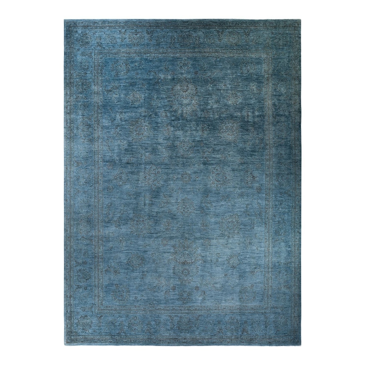 Overton Hand Knotted Wool Vintage Inspired Modern Contemporary Overdyed Gray Area Rug - 12' 1" x 16' 1"