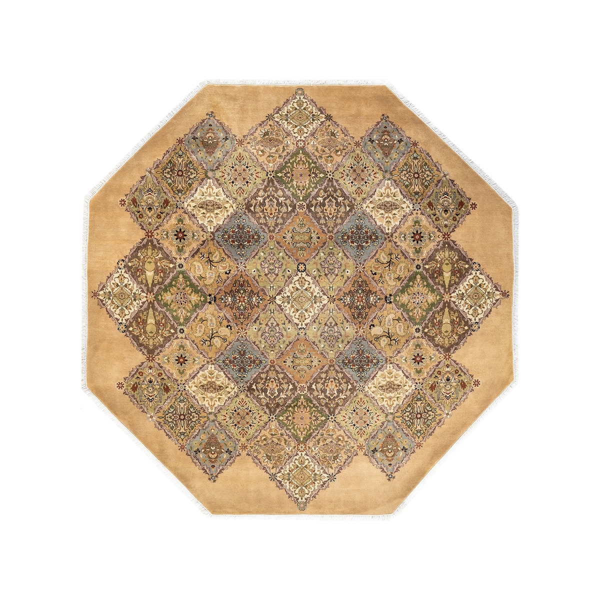 Overton Handknotted Wool Traditional Oriental Yellow Octagon Area Rug - 6' x 9'