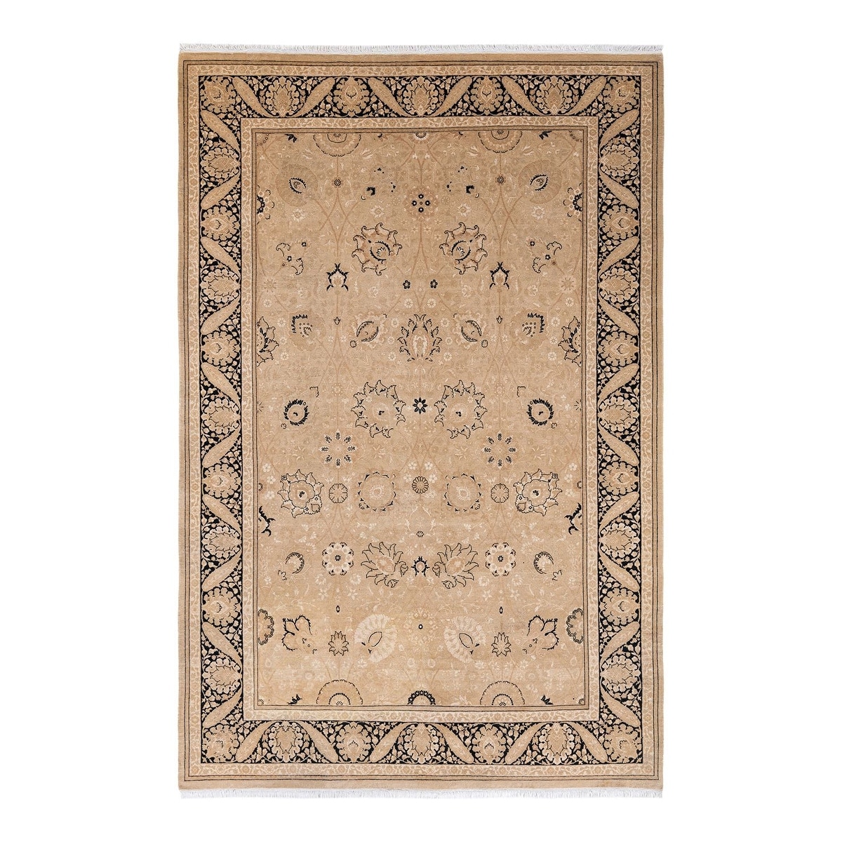 Overton Hand Knotted Wool Vintage Inspired Traditional Mogul Beige Area Rug - 6' 3" x 9' 5"
