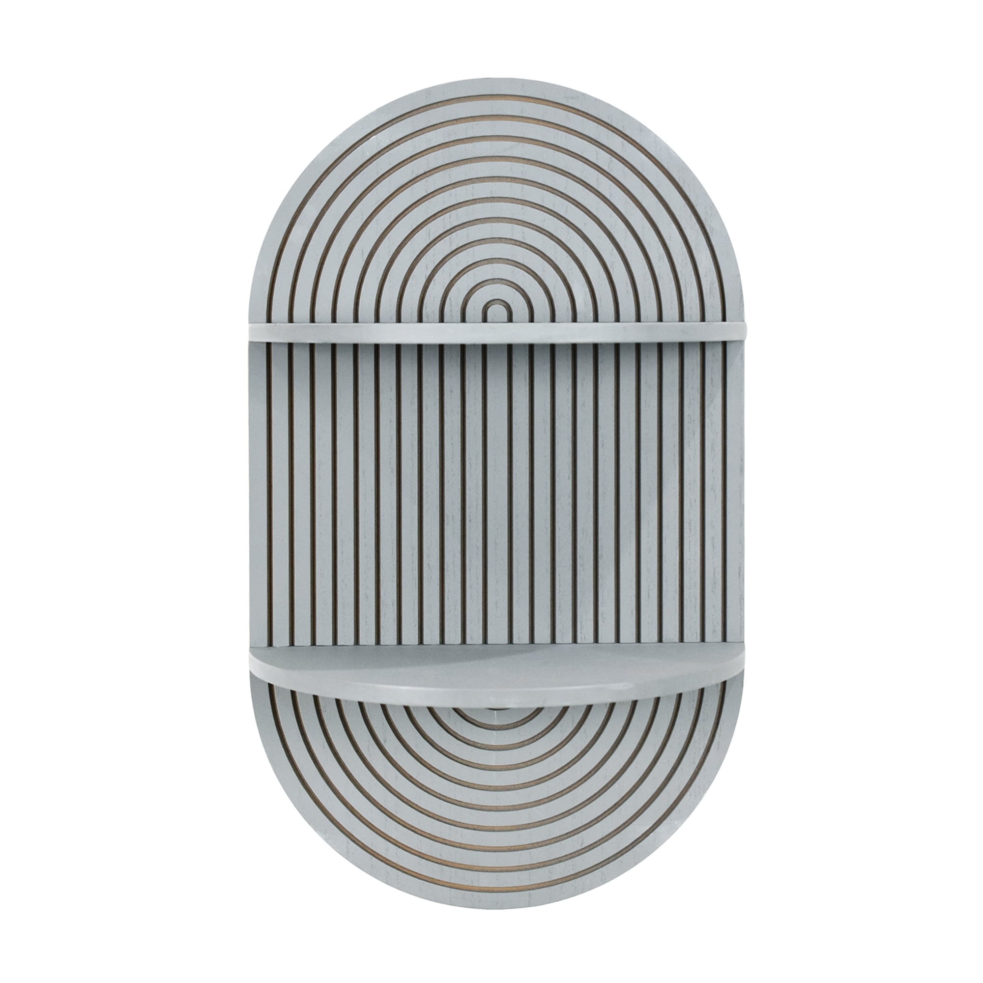 American Art Decor Grey Boho Arched Carved Modular Lunar Ledges 2-Tier Floating Wall Shelf - 14" x 24" x 8"