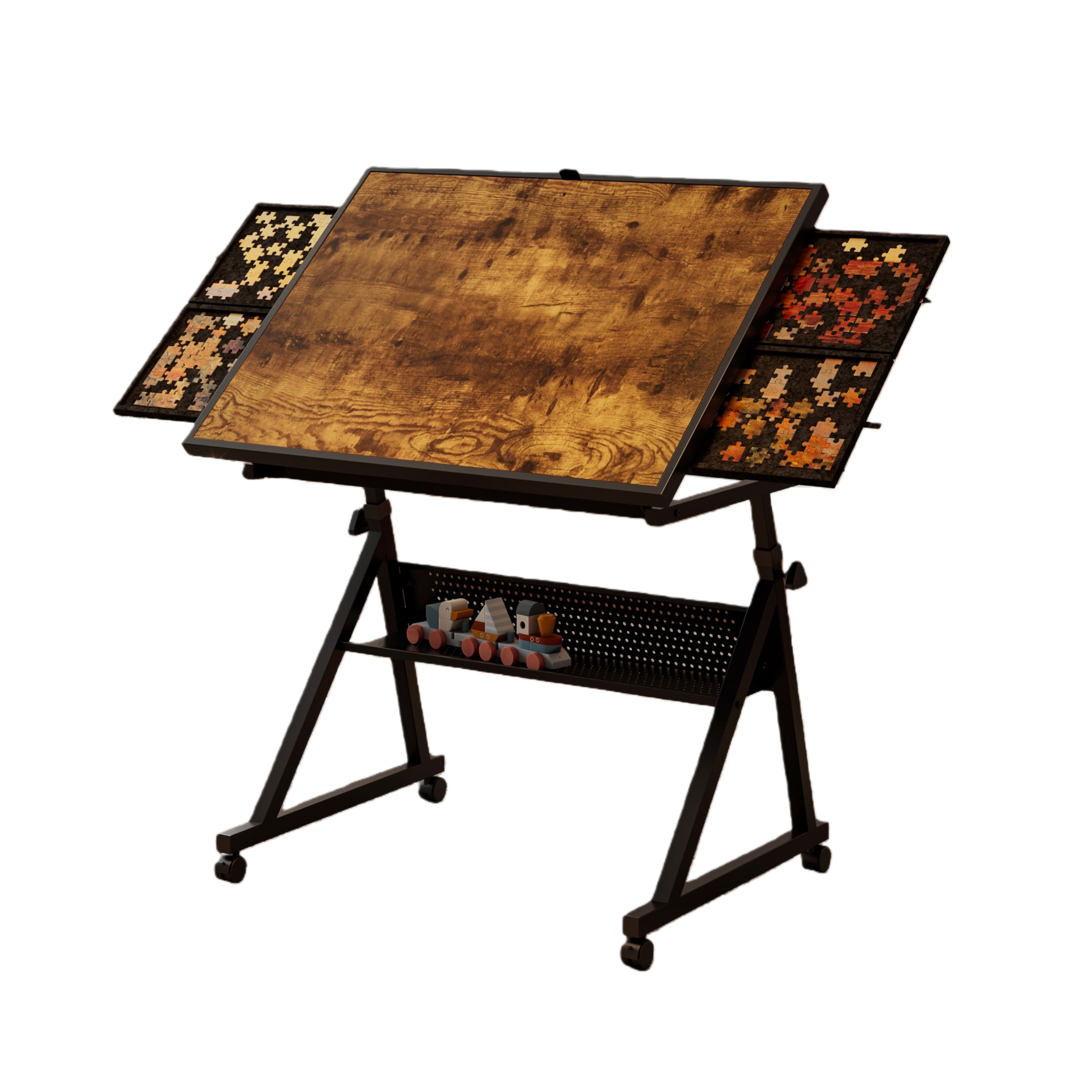 Adjustable Angle Puzzle Table w/ 4 Felt Trays, Wheels & Storage Shelf