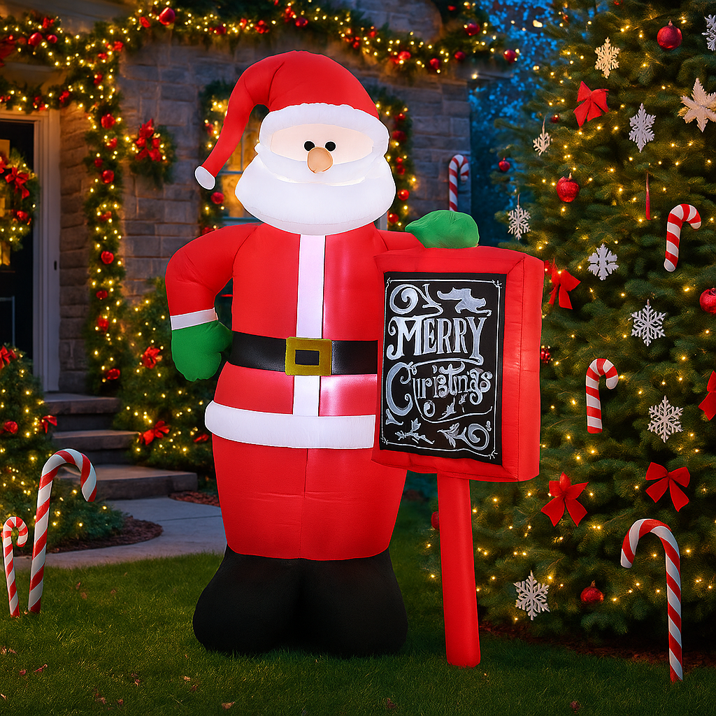 Inflatable Toy Christmas Decorations, Santa Claus Holding Sign Toy, Ornaments With LED Lights, Home Yard Holiday Decor qm01105 86wj