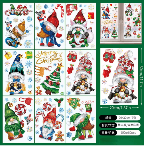 9PCS Snowflake Christmas Window Stickers Reindeer New Year Electrostatic White Holiday Decals i
