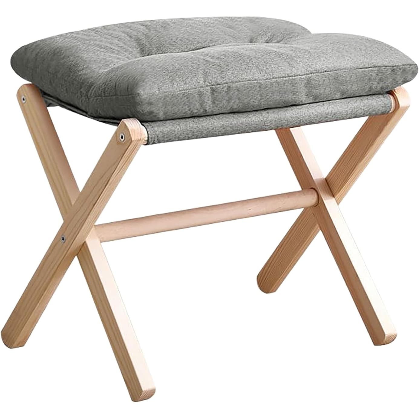 Foldable Wood Foot Rest with Thick Cushion, Modern Padded Stool for Living Room, Bedroom, Makeup (Gray)