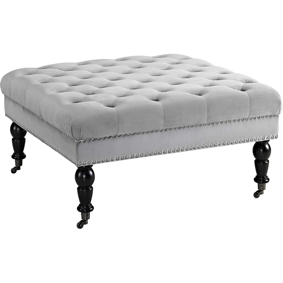 Home Décor Marianne Gray Velvet Square Tufted Ottoman, Black