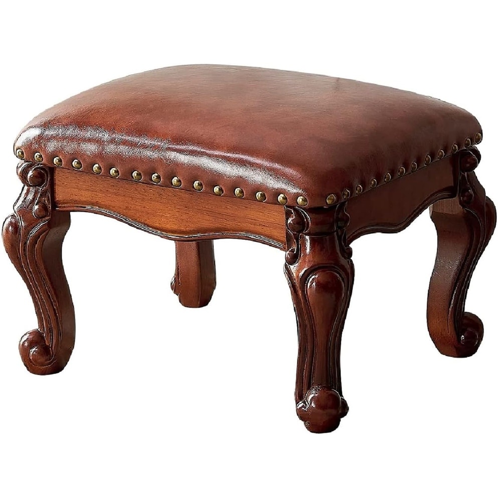 Foot Stool Microfiber Leather Ottoman Wooden Shoe Stool Small Sofa Stool Footrest Stool for Living Room Bedroom (Red-Brown)
