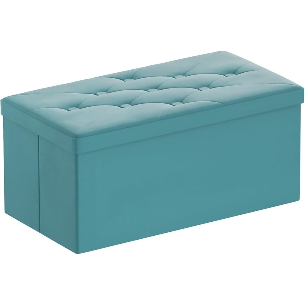 Folding Storage Bench, Foot Rest for Bedroom, Living Room, Entryway, 15.7" x 31.5" x 15.7", Teal