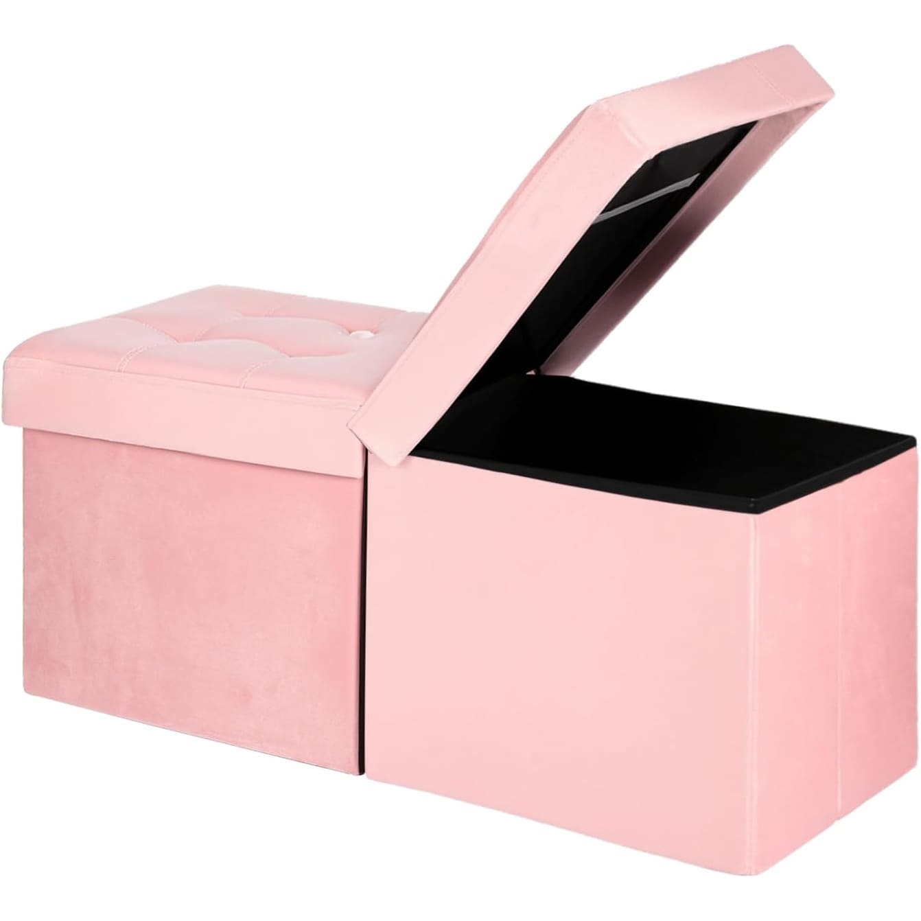 34" Pink Velvet Footrest Ottoman with Storage, Padded Seat, Flip-Top Bench for Living Room & Bedroom