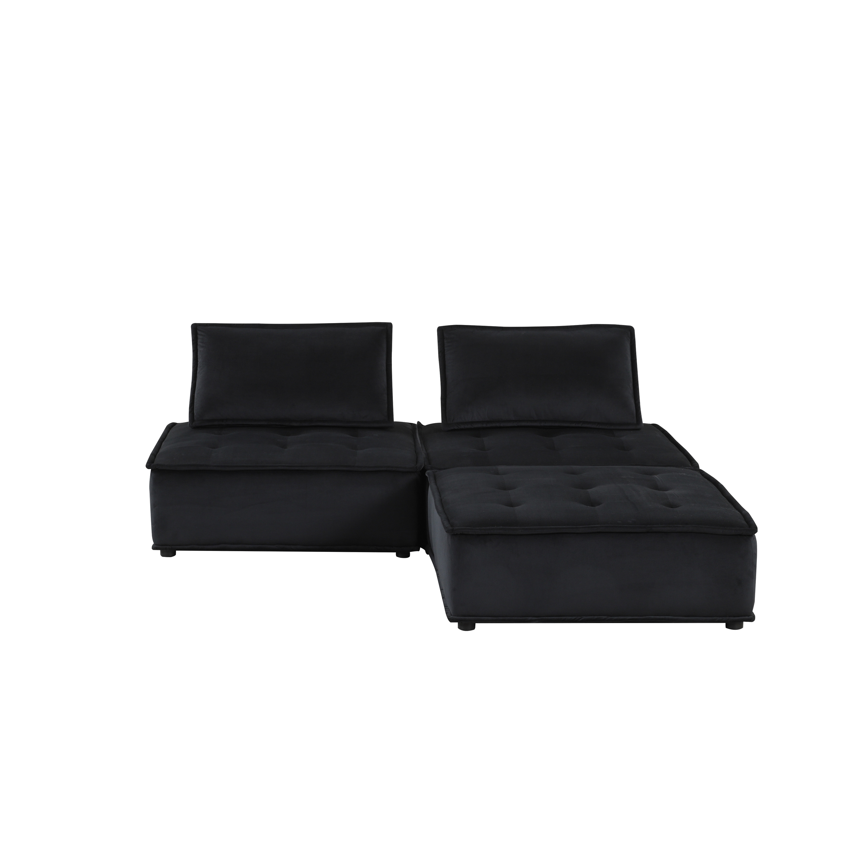 Anna 80" Black Velvet 3 Pc Sectional Sofa Ottoman
