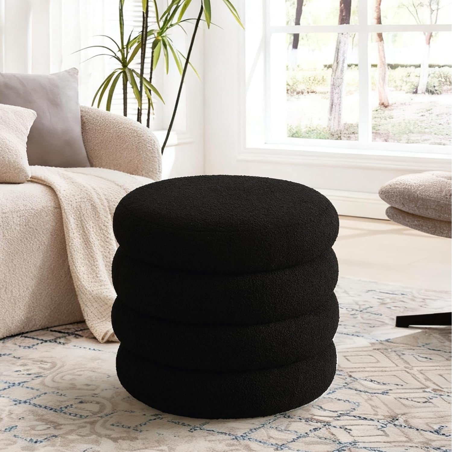 20.1" Round Storage Ottoman with Removable Lid, Sherpa Foot Stool for Bedroom or Living Room