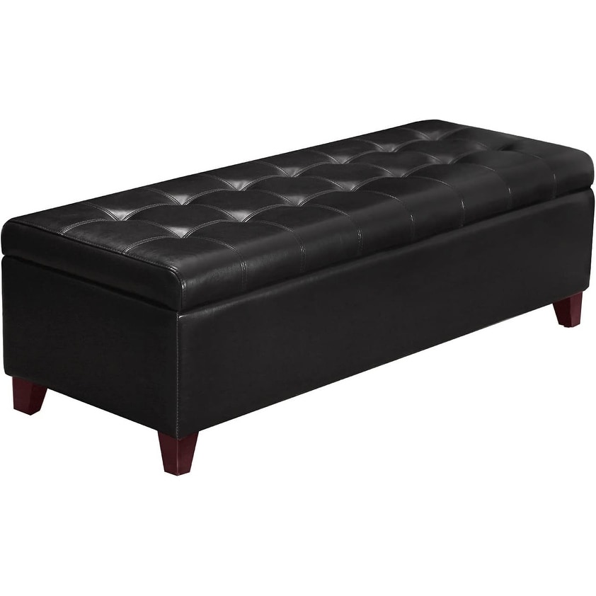 Storage Ottoman Bench, 51 Inch Leather Tufted Upholstered Bench for End Foot of Bed, Bedroom, Living Room, Black