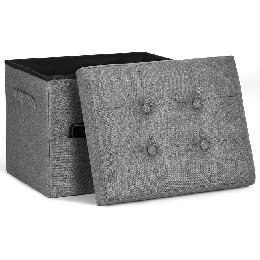 Foldable Storage Ottoman with Thick Foam Seat, Linen Footrest Bench for Living Room or Bedroom, 17x13x13in, Dark Gray