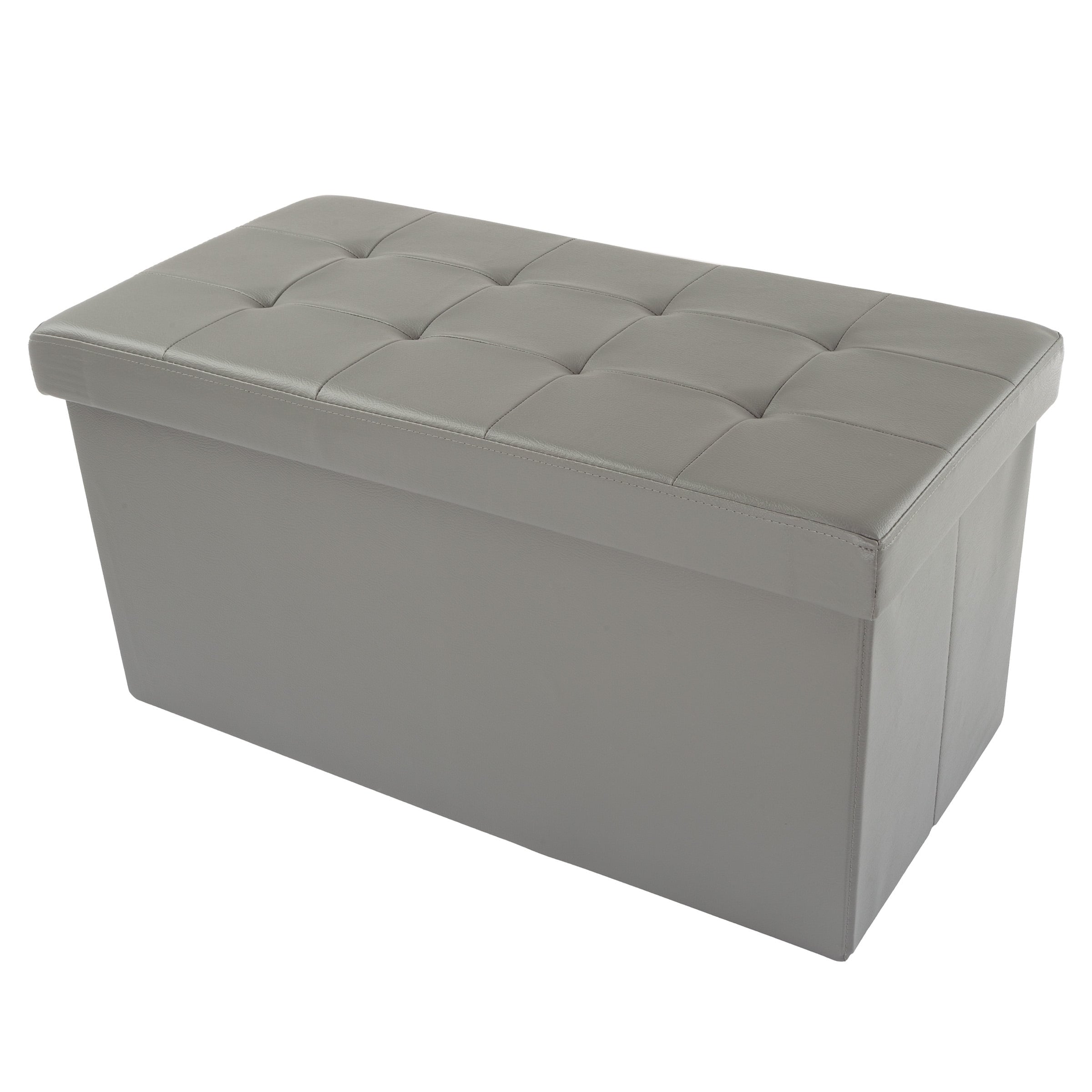 30-inch Folding Storage Ottoman Bench with Padded Lid, Gray Faux Leather Footrest, Foldable Chest for Living Room