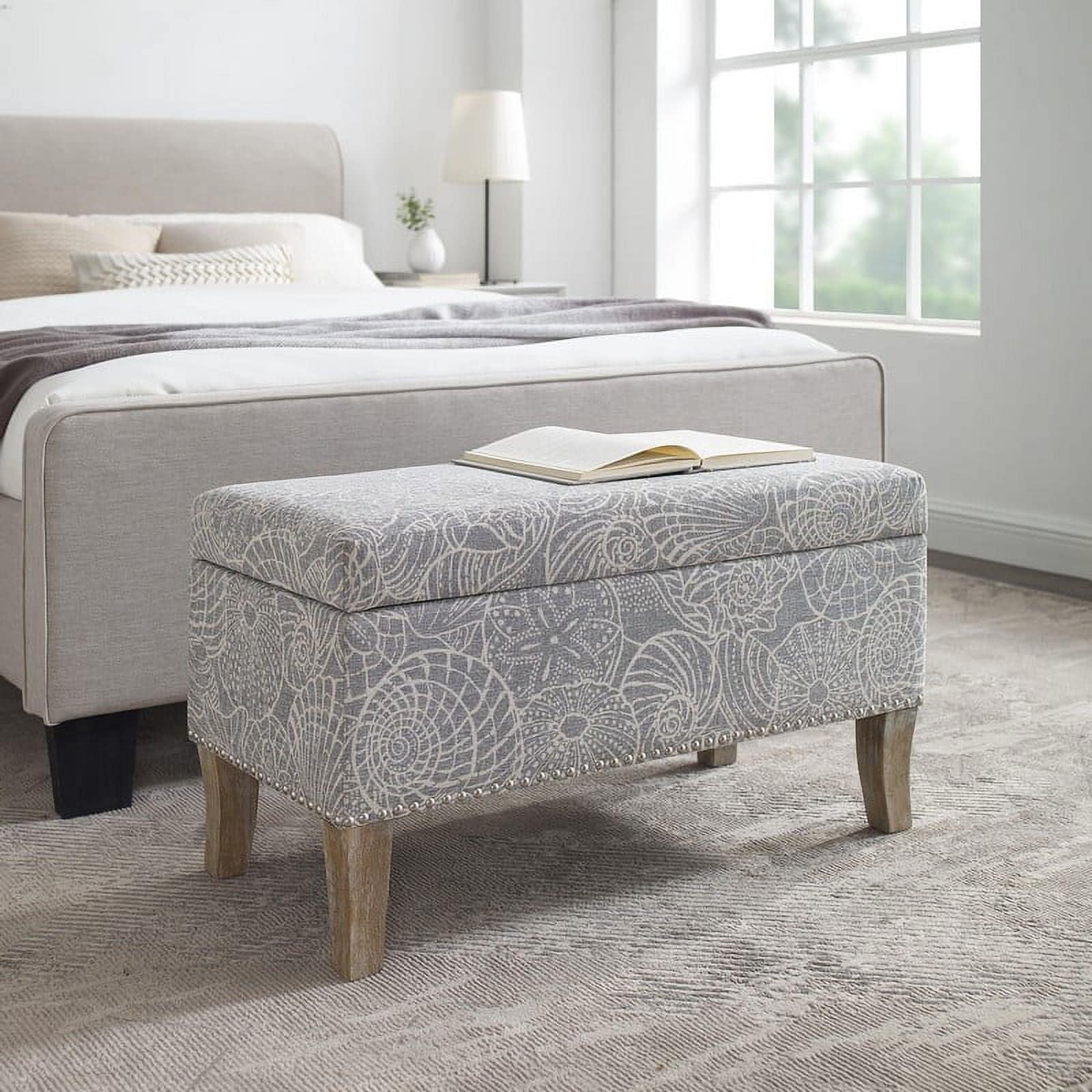 32-inch Seashell Storage Ottoman Bench with Hidden Compartment